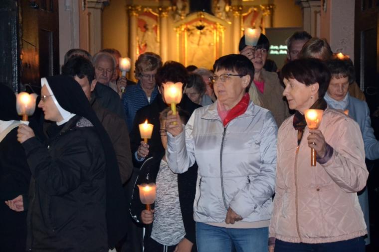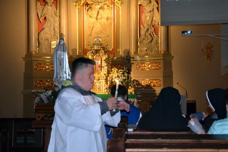 Piękny duchowo był dzień 13 października A.D. 2019 roku. Zbiegło się w nim tyle ważnych wydarzeń. Przypadł tym razem w niedzielę, dzień Pański. W tym dniu przeżywaliśmy także XIX Dzień Papieski, który tym razem przebiegał pod hasłem: „Wstańcie, chodźmy”. Wreszcie był to dzień fatimski. W niedzielny wieczór mikstacka świątynia wypełniła się wiernymi, którzy w tym szczególnym dniu przyszli na ostanie w tym roku nabożeństwo fatimskie. Nabożeństwu przewodniczył ks. kan. Krzysztof Ordziniak. Przed 102 laty miało miejsce szóste objawienie fatimskie. Przy pięknie ozdobionej kwiatami figurze Matki Bożej Fatimskiej ustawionej w środkowej nawie płonęła świeca. To od niej, po zakończeniu trzeciej tajemnicy, ministrant odpalił świeczkę i zaniósł płomień jej wiernym zebranym w kościele. Na początku ks. proboszcz przybliżył zebranym okoliczności szóstego objawienia się Fatimskiej Pani. W czasie tego objawienie Maryja powiedziała do Łucji: „chcę ci powiedzieć, żeby zbudowano tu na moją cześć kaplicę. Jestem Matką Boską Różańcową. Trzeba w dalszym ciągu codziennie odmawiać różaniec”. Zapowiedziała także zakończenie wojny. We wrześniu Maryja zapowiadała „ w październiku przybędzie również Nasz Pan, Matka Boża Bolesna i z Góry Karmelu, św. Józef z Dzieciątkiem Jezus, żeby pobłogosławić świat”. Z relacji zgromadzonych wynikało, że zobaczyli św. Józefa z Dzieciątkiem Jezus i Maryją. Święty Józef z Dzieciątkiem błogosławili świat wykonując ręką znak w kształcie krzyża. Podczas tego objawienia miał miejsce cud słońca. W jego atmosferę wprowadziły nas przytoczone przez ks. kanonika opisy prasowe z tamtego okresu. Nawiązując do słów Ewangelii, które Kościół przeznaczył na XXVIII niedzielę ks. kan. Krzysztof zachęcał zebranych, by ta modlitwa różańcowa była naszym dziękczynieniem za pontyfikat św. Jana Pawła II, za Jego przykład umiłowania Maryi, ale także za ocalenie Go podczas zamachu. W modlitwie polecaliśmy także naszą ojczyznę. Był też czas, by w cichości serca przedstawić Pani z Fatimy nasze osobiste intencje, zarówno podziękowania jak i prośby, z którymi przyszliśmy na modlitewne spotkanie.Rozważaliśmy tajemnice chwalebne różańca. Kontemplacja każdej tajemnicy zakończone było postanowieniem. W pierwszej tajemnicy rozważaliśmy Zmartwychwstanie Pana Jezusa. Postanowienie, które wybrzmiało po rozważeniu tej tajemnicy zachęcało nas do ożywienia w sobie życia nadprzyrodzonego poprzez częste korzystanie z sakramentów świętych. W drugiej tajemnicy rozważaliśmy Wniebowstąpienie Jezusa. Ważne dla naszego duchowego rozwoju postanowienie wybrzmiało po rozważaniu drugiej tajemnicy chwalebnej. Zachęcało ono do unikania najmniejszego grzechu i zgadzania się zawsze z wolą Bożą. W kolejnej tajemnicy rozważaliśmy Zesłanie Ducha Świętego. Po tej tajemnicy popłynęły do zebranych słowa zachęty do codziennej modlitwy do Ducha Świętego. Po czwartej tajemnicy wybrzmiały następujące słowa postanowienia: „ Dozwól Panno Święta, bym Cię godnie chwalił. Udziel mi mocy przeciw Twoim wrogom". Rozważając piątą tajemnicę uczestniczący w nabożeństwie usłyszeli słowa zachęty do tego, by uczynili Maryję Królową swoich serc. Następnie odmówiliśmy modlitwę Anioła z Fatimy do Trójcy Przenajświętszej, by po jej zakończeniu za krzyżem i figurą Matki Bożej ze śpiewem „ Z dalekiej Fatimy…”, z płonącymi lampionami wyruszyć w procesji wokół kościoła. Z wieży rozległo się bicie dzwonów. Był to znak, że właśnie wybiła godzina 21:00 i czas na Apel Jasnogórski, który zaśpiewaliśmy w łączności z Jasną Górą- duchową stolicą Polski. Ksiądz kanonik udzielił wszystkim błogosławieństwa. Potem otoczyliśmy figurę Fatimskiej Pani i zaśpiewaliśmy kołysankę „Zapada zmrok…”. Piękny duchowo dzień 13 października za nami…