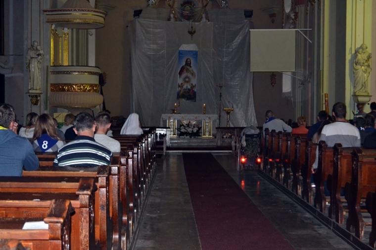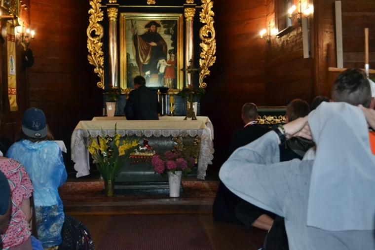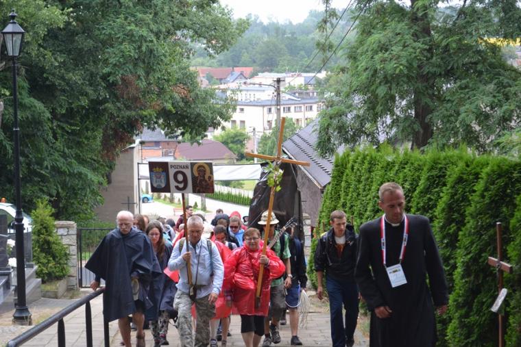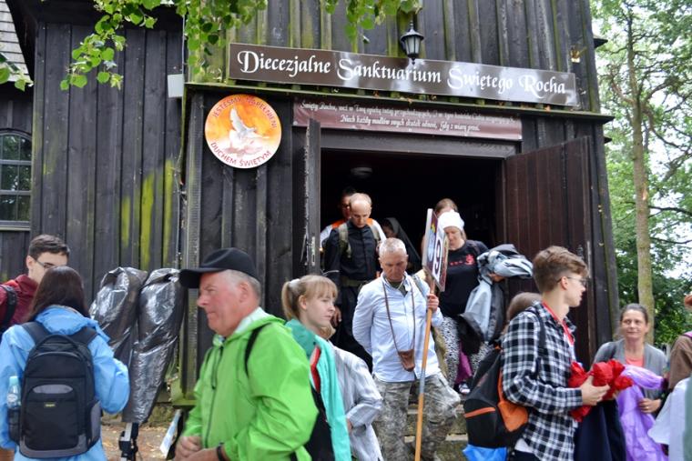 Wiele grup przeszło w ten lipcowy deszczowy dzień przez mikstacką parafię. Jak wspomniano, grupa 8 od lat przyjmowana jest na nocleg przez mieszkańców Mikstatu. Pątnicy z grupy 8 spotkali się o godz. 19:00 w kościele farnym pw. Świętej Trójcy na adoracji Najświętszego Sakramentu. Prowadzący je kapłan w słowach rozważania zwrócił uwagę na cztery etapy rozwoju wiary Piotra. Zachęcał jednocześnie zebranych w świątyni, by odpowiedzieli sobie na pytanie na jakim etapie jest ich wiara. Podczas adoracji była okazja do sakramentu pokuty i pojednania. Błogosławieństwo Najświętszym Sakramentem zakończyło modlitewną część spotkania. Z kolei grupa 9 nocowała w Komorowie. Od pięciu lat po drodze nawiedzają Diecezjalne Sanktuarium Świętego Rocha. Tu zostali powitani przez kustosza miejsca ks. kan. Krzysztofa Ordziniaka, który przybliżył im postać św. Rocha, akcentując rolę i znaczenie krzyża w Jego życiu. Podkreślił, że został on wymodlony rodziców przez wstawiennictwo Matki Bożej. Ks. kustosz zachęcał pątników, by „zaprzyjaźnili się” z tym Świętym, gdyż jest on patronem pielgrzymów. Wymowne było to spotkanie pielgrzymów ze Świętym Rochem. Przecież On też był pielgrzymem, więc doskonale rozumie ich ból, cierpienie, zmęczenie, ale jednocześnie może być dla nich wzorem wzajemnej służby, pomocy, głoszenie miłości Boga do człowieka właśnie na pielgrzymim szlaku. Następnie przy wystawionym Najświętszym Sakramencie pielgrzymi odśpiewali Koronkę do Miłosierdzia Bożego i wyruszyli w dalszą drogę do niedalekiego Komorowa, by tam nieco odpocząć. Rano obie grupy wyruszą na kolejny etap wędrówki… Taki jest pielgrzymi los. Jasna Góra coraz bliżej i już za pięć dni pątnicy staną przed tronem Matki i Królowej, by złożyć u Jej stóp swoje radości i troski, prośby i podziękowania.