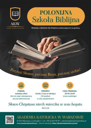 Polonijna Szkoła Biblijna to inicjatywa, która łączy tradycję z nowoczesnością, naukę z duchowością oraz lokalność z globalnym zasięgiem. Dzięki niej Polacy rozsiani po całym świecie zyskują realną możliwość systematycznego poznawania Biblii i pogłębiania życia wiary – niezależnie od miejsca, w którym żyją.