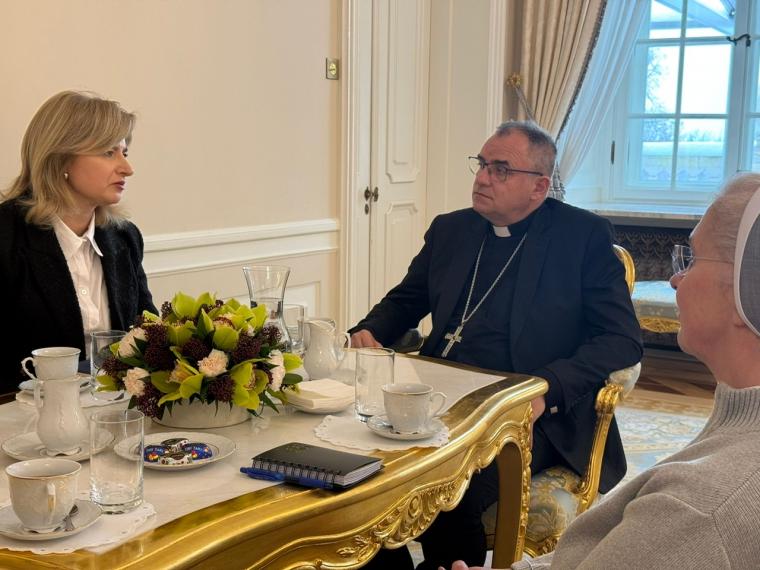 Podsekretarz Stanu w KPRP Agnieszka Jędrzak, która odpowiada za Biuro do Spraw Polonii oraz Biuro Odznaczeń i Nominacji, nakreśliła główne kierunki działań Prezydenta RP na rzecz Polaków za granicą oraz zapewniła o gotowości współpracy Kancelarii Prezydenta RP z Konferencją Episkopatu Polski i wsparcia projektów realizowanych na rzecz rodaków mieszkających poza Ojczyzną. W trakcie rozmowy poruszono również kwestie dbałości o pamięć historyczną oraz istotne znaczenie polityki odznaczeniowej Prezydenta RP, jako wyrazu wdzięczności i uznania dla zasług Polonii.