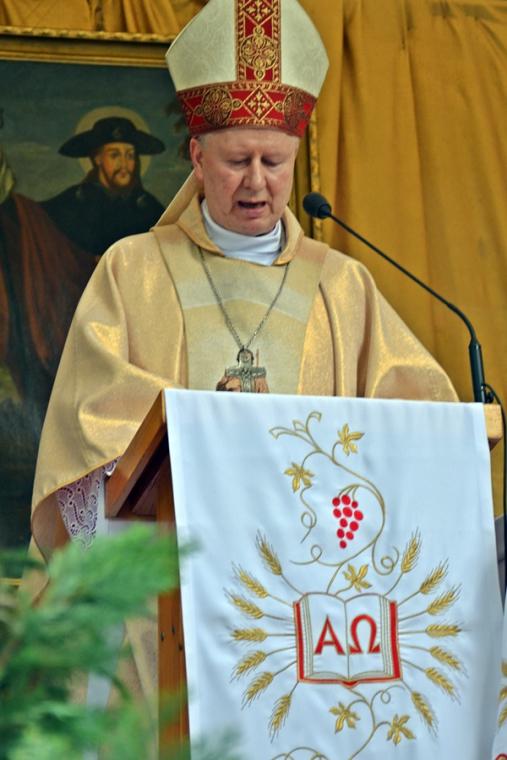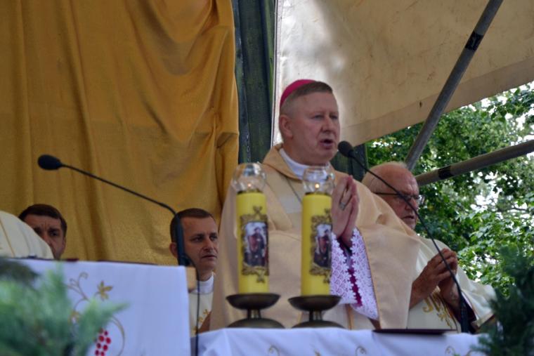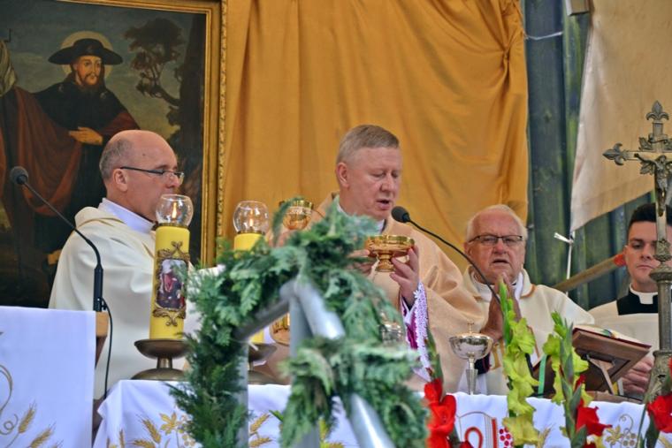 Podczas uroczystej sumy homilię wygłosił ks. bp Wiesław Szlachetka. Na początku ksiądz biskup skierował słowa powitania do ks. kustosz, przedstawicieli władz, lekarzy weterynarii, parafian i pielgrzymów. Ksiądz biskup podkreślił, że przybyliśmy na to Mikstackie Wzgórze, by prosić świętego Rocha o wstawiennictwo i uczyć się od niego miłości do Boga i bliźnich oraz szacunku dla wszystkich stworzeń. Hierarcha zachęcał zgromadzonych do skorzystania z daru odpustu.