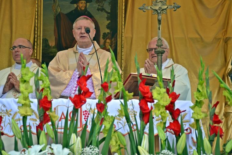 Kaznodzieja zaakcentował, że kroczenie drogą ośmiu błogosławieństw przybliża nas do Boga. Taka była droga życiowa św. Rocha, który z odwagą, służył wszystkim potrzebujący pomocy, a przez czyniony na czole znak krzyż wielu uzdrowił. Był tym, który nie tylko troszczył się o ludzi, ale i o zwierzęta, stąd jego patronat nad zwierzętami. Kaznodzieja przypomniał, że Kardynał Józef Glemp ustanowił św. Rocha patronem polskich lekarzy weterynarii. W dalszej części homilii ksiądz biskup wskazywał na moc błogosławieństwa. Powiedział: „ Błogosławić kogoś, to powierzać go Bogu, Bożej opiece, życzyć mu dobra, szczęścia. Zaś przeklinać kogoś, to życzyć mu zła”. Kaznodzieje podkreślił, że błogosławieństwo jest udzielane i w mikstackim sanktuarium. Kontynuując zawiązał do odbywającego się w Mikstacie obrzędu błogosławieństwa. Celebrans zwrócił uwagę, że Biblii zwierzęta wykorzystywane są w zbawczej dydaktyce. Przywołał fragment wiersza ks. Jana Twardowskiego mówiący o tym, że Bóg stworzył psa po to, aby uczył człowieka wierności. Ponadto kaznodzieja zwrócił uwagę, że Katechizm Kościoła Katolickiego wskazuje, że człowiek może wykorzystywać zwierzęta, tylko wtedy, gdy jest to niezbędne dla jego życia. W dalszej części homilii ks. biskup zwrócił uwagę na występując coraz częściej zjawisko humanizacji zwierząt i dehumanizacji człowieka. Przejawia się on w hasłach „ Pies to też człowiek” albo „Koń to też człowiek”. Takie humanizowanie zwierząt jest dehumanizowaniem człowieka. Bo skoro zwierzę równa się z człowiekiem, to człowieka się poniża – dodał celebrans. Kończąc homilię ksiądz biskup powiedział: „Tylko posłuszeństwo Bożym prawom może zapewnić w świecie ład i porządek, a droga ośmiu błogosławieństw przybliża świat i nasze życie do Bożego królestwa. Doskonale rozumiał to i praktykował św. Roch. Z całego serca życzę wszystkim, abyśmy to jego piękne świadectwo przenosili do codziennego życia”. Amen. Wiele cennych wskazań zostało zawartych w słowach skierowanych do wiernych zebranych przy sanktuarium. W świat popłynęło przesłanie o właściwym traktowaniu zwierząt, o właściwych relacjach między człowiekiem a zwierzęciem. Były także słowa zachęcające do naśladowania naszego Patrona w życiu codziennym. Ksiądz biskup zachęcał, by rodzice często błogosławili swoje dzieci. Błogosławcie, a nie przeklinajcie, nie złorzeczcie to przesłanie wynikające z przeżywanego odpustu ku czci apelował ksiądz biskup.