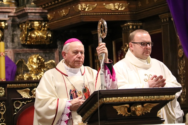 Przekonywał, że Maryja i św. Józef są nierozłączni. - Bóg wybrał Maryję i Józefa, żeby byli małżonkami i rodziną Jezusa, naszego Zbawiciela. Tych dwoje jest razem w zamyśle zbawczym Boga. Niech Maryja i św. Józef wezmą każdego z nas za ręce, tak jak na tym obrazie za ręce biorą Jezusa, i poprowadzą do Jezusa, do Boga, do zjednoczenia z Bogiem. Gdy skończy się to życie tutaj na ziemi niech nas Maryja i Józef zaprowadzą do Boga i to będzie radość, to będzie szczęście, to będzie niebo – mówił bp Napierała.