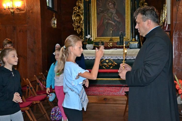Można powiedzieć, że stało się już tradycją w mikstackiej wspólnocie, że w dniach poprzedzających uroczystości odpustowe ku czci św. Rocha z obrzędem błogosławieństwa zwierząt ks. kan. Krzysztof Ordziniak kustosz sanktuarium zaprasza młodych do szkoły. Spieszymy z wyjaśnieniem, że jest to Szkoła Rochowa, niezwykła, łącząca w sobie wiele elementów takich jak modlitwa, śpiew, nauka, zabawa, spotkania w ciekawymi ludźmi. Trzeba dodać, że czyni to chyba w sposób dla młodych atrakcyjny skoro mimo wakacji chętnie do niej przychodzą. Pierwszy dzień w Rochowej Szkole przebiegał pod hasłem: „Chrzest jako brama Kościoła”. Podczas spotkania ks. kan. Krzysztof Ordziniak poprowadził modlitwę nowennową z dziećmi oraz zapoznał je z pierwszym okresem życia patrona sanktuarium. Zwrócił uwagę na słowa testamentu duchowego pozostawionego mu przez ojca. Był także czas na rozmowę z dziećmi o dziedzictwie, tym należącym do nich, do ich rodzin. Ponadto ks. kan. Krzysztof wyjaśnił ideę spotkań w Rochowej Szkole w tym wyjątkowym dla mikstackiej wspólnoty parafialnej czasie. Piękna pogoda zachęcała do zabawy na świeżym powietrzu. Ich organizacją zajęła się s. Małgorzata. Jak w prawdziwej szkole były i zadania domowe. Ksiądz kustosz poprosił dzieci, by wypisały prośby i podziękowania do modlitwy nowennowej.