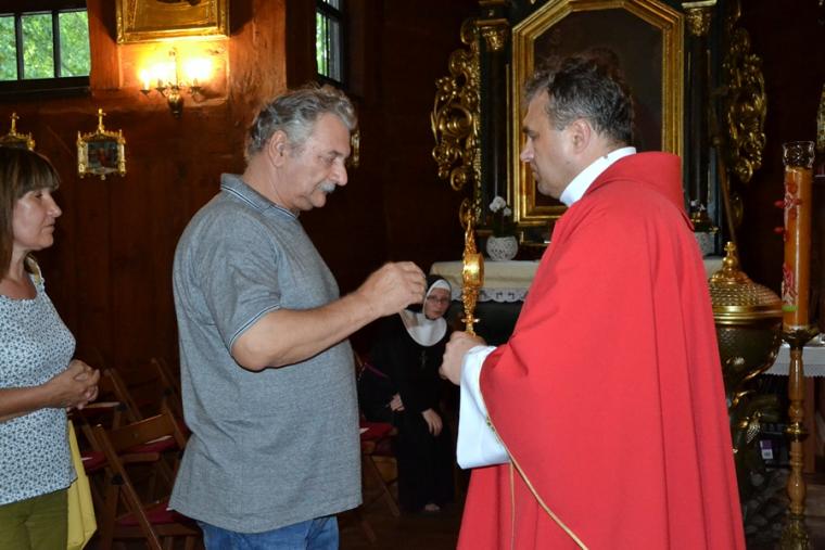 Piękne duchowo są te przedodpustowe dni w Diecezjalnym Sanktuarium Świętego Rocha w Mikstacie , wypełnione modlitwą, udziałem w Eucharystii, zasłuchaniem w słowo Boże i pochylaniem się nad bogactwem myśli przekazywanych w naukach rekolekcyjnych. Trzeci dzień nowenny przypadł w piątek. O godz. 18:00 została odmówiona koronka do miłosierdzia Bożego. Po koronce w sanktuarium wybrzmiały Godzinki o Świętym Rochu Wyznawcy. Następnie rozpoczęła się msza św. Przy ołtarzu stanął głoszący nauki rekolekcyjne ks. Sebastian Łagódka wraz z kustoszem miejsca, ks. kan. Krzysztofem Ordziniakiem. Rozpoczynając konferencję ksiądz rekolekcjonista zaznaczył, że wpatrujemy się w świętego Rocha, który był doskonałym uczniem Chrystusa. Ponieważ Chrystus był jego mistrzem i nauczycielem rezygnował z wielu spraw należących do świata, aby nie przeszkadzały mu w zdobywaniu Bożej mądrości. Kontynuując ksiądz Sebastian pytał: co to znaczy być uczniem Chrystusa. Zaznaczył, że by być uczniem Chrystusa trzeba pójść za Nim. Celebrans zwrócił uwagę, że każdy z nas przez sakrament chrztu jest wezwany do tego by być uczniem Chrystusa- dodał - że jest to warunek zbawienia. Ksiądz rekolekcjonista zaakcentował, że istotą bycia uczniem Chrystusa jest podążanie za Jezusem. Kontynuując kapłan przywołał przykład dobrego pasterza za którym podążają owce, bo znają głos pasterza, ufają mu. Pasterz nigdy nie chce krzywdy swoich owiec – dodał. W dalszej części konferencji powiedział: „ Pasterz idzie pierwszy, ci którzy są jego uczniami idą za nim. I dlatego Pan Jezus powie w swojej Ewangelii do uczniów ja jestem drogą, ja jestem prawdą i ja jestem życiem. Tak jakby chciał powiedzieć nam: naucz się chodzić tą drogą, wsłuchuj się w prawdę, którą będę ci mówił, abyś osiągnął prawdziwe życie”. Jak zaakcentował kaznodzieja św. Roch realizował to wskazanie i podążał zawsze za Chrystusem, mimo że, wiązało się to z wieloma wyrzeczeniami i trudnymi doświadczeniami. Święty Roch wierzył, że nie ma innej drogi, ani nie ma innej prawdy niż ta, którą ma Bóg. Ksiądz rekolekcjonista zaakcentował, że szczególnie w czasach współczesnych trzeba sobie często o tym przypominać. Podkreślił, że trzeba nieustannie wsłuchiwać się w prawdę i być posłusznym prawdzie, posłusznym Bogu. Jednocześnie celebrans zaznaczył, że w czasach współczesnych człowiek ma problem z posłuszeństwem. Wynika to z faktu, że każdy chce być niezależny. Trudno być posłusznym powiedział kaznodzieja, ale posłuszeństwo jest jednym ze znaków bycia uczniem Chrystusa. Istotą grzechu jest brak posłuszeństwa Bogu, dodał ksiądz rekolekcjonista. Jednocześnie zaznaczył, że posłuszeństwa trzeba się uczyć, by być uczniem Chrystusa. Ksiądz Sebastian wyjaśnił zebranym w mikstackim sanktuarium, że ważne jest by to posłuszeństwo wynikało z zaufania Bogu. Zachęcał, byśmy prosili św. Rocha o umiejętność bycia posłusznymi Bogu w zaufaniu. Podkreślił, że ważne byśmy mieli w sobie ducha posłuszeństwa i ducha zaufania. Następnie ksiądz rekolekcjonista przeczytał wiersz ks. Jana Twardowskiego „Zaufałem drodze”. To ulubiony poeta celebransa, a przytoczony wiersz- jak powiedział- patronuje mu na drodze jego wiary. Ks. Sebastian zakończył piątkową konferencję słowami: „ Zaufałem drodze, tą drogą jest Chrystus, zaufałem prawdzie, tą prawdą jest Chrystus, bo ufam i chcę żyć, prawdziwie nie tylko tu, ale wiecznie, a tym życiem też jest Chrystus”. Dziękujemy księdzu rekolekcjoniście za słowa do nas skierowane, za kolejne cenne wskazania, które będą pomocne w przemianie naszego życia, w naszym podążaniu Bożym drogami. Kolejna nauka rekolekcyjna zapewne wielu zmobilizowała do rachunku sumienia z naszego zaufania i posłuszeństwa Panu Bogu. Potrzebujemy takich chwil refleksji, zatrzymania, wskazówek do pracy nad sobą, po to by wybrać Jezusa, który jest drog, prawdę, życiem, bo w każdym z nas jest tęsknota za życiem wiecznym.