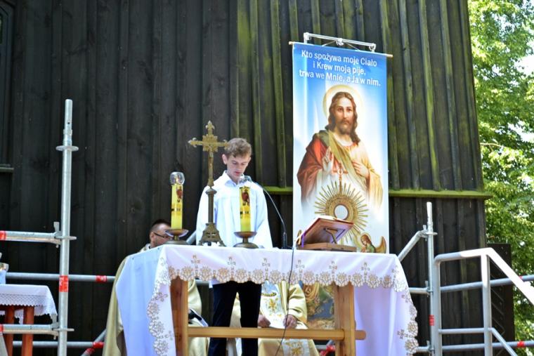31. maja obchodziliśmy Uroczystość Najświętszego Ciała i Krwi Pańskiej. Jest to dzień wyjątkowy w życiu Kościoła, ale także w życiu każdej wspólnoty parafialnej. . W tym szczególnym dniu Jezus ukryty pod postacią chleba w Najświętszym Sakramencie opuszcza kościół, by przemierzając ulice miast, miasteczek, wiosek zobaczyć, jak się powodzi Jego dzieciom. W mikstackiej wspólnocie parafialnej uroczysta suma, po której ulicami miasta wyruszyła procesja do czterech ołtarzy została odprawiona przy Diecezjalnym Sanktuarium Świętego Rocha o godz. 9:00. Przewodniczył jej ks. kan. Krzysztof Ordziniak, kustosz sanktuarium, współcelebransem był ks. wikariusz Krzysztof Lipiński. Ksiądz proboszcz polecał w Eucharystii wszystkich parafian, tych którzy przygotowywali ołtarze oraz tych, którzy będą obsługiwali procesje. Homilię wygłosił ks. kan. Krzysztof Ordziniak. Rozpoczynając podkreślił, że dwa razy w ciągu roku Bóg opuszcza mury kościoła, by udać się do swoich dzieci. Czyni to w uroczystość Wszystkich Świętych, kiedy to idzie na cmentarze, by opłakiwać wraz z nami naszych bliskich, przyjaciół, znajomych. To drugie wyjście ma charakter radosny i ma miejsce właśnie w uroczystość Najświętszego Ciała i Krwi Pańskiej. W tym dniu- jak podkreślił celebrans przygotowujemy ołtarze, dekorujemy domy, aby przywitać Pana, nawiedzającego zagrody swoich dzieci. Kontynuując ks. kan. przywołał słowa pieśni „ Zróbcie Mu miejsce, Pan idzie z nieba…” zaakcentował, że wskazuje ona z jednej strony cel wyjścia Jezusa ze świątyni, ale także sposób w jaki powinniśmy czcić przyjście Pana. Kaznodzieja wskazał, że pieśń ta wskazuje dary jakie przynosi nam Pan. Zaznaczył, że udział w procesji jest wyznaniem naszej wiary. Przytoczył wydarzenie z czasów okupacji, kiedy to grupa więźniów udała się z obozu pracy do miasteczka eskortowana przez esesmanów. Po drodze spotkali kapłana jadącego z Wiatykiem do chorego. Wszyscy uklękli. Ów kapłan, jak wskazał celebrans, będąc pod wrażeniem takiej relacji więźniów zapisał w kronice mi. in. takie słowa: „Naród, który ma taką wiarę, nie może zginąć”. Ks. kan. Krzysztof zachęcał zebranych, by zapamiętali te słowa, ale także by czcili Chrystusa nie tylko pokłonem, ale także śpiewem. Podkreślił, że procesja nie jest pochodem niemych, a polskie pieśni eucharystyczne są niezwykle piękne. Przywołał przykład barwnych procesji Bożego Ciała odbywających się w Łowiczu, które zostały wpisane na Krajową Listę Niematerialnego Dziedzictwa Kulturowego, na której jak przypomniał ks. kustosz znajdują się także nasze uroczystości odpustowe ku czci św. Rocha połączone z obrzędem błogosławieństwa zwierząt.