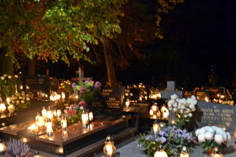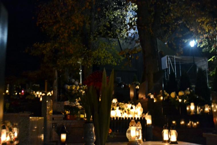 Tak jak podczas każdej Eucharystii Pan zastawił dla nas stół, wielu skorzystało z zaproszenia i przyjęło Komunię Świętą zapewne ofiarując ją za swoich bliskich zmarłych. Po końcowym błogosławieństwie odbyła się procesja z modlitwami za zmarłych. Modlitwie przewodniczył ks. kan. Krzysztof Ordziniak. Przy pierwszej stacji modliliśmy się za zmarłych biskupów, kapłanów, diakonów, braci i siostry zakonne. W sposób szczególny polecaliśmy kapłanów, którzy posługiwali w naszej wspólnocie parafialnej. Druga stacja była miejscem modlitwy za zmarłych rodziców i przodków. Ważna jest pamięć o tych, którzy przekazali nam życie, wiarę, troszczyli się o przekaz tradycji. Przy trzeciej stacji polecaliśmy miłosierdziu Bożemu braci, siostry, dzieci, współmałżonków, krewnych, rodziców chrzestnych, wychowawców, dobrodziejów. To ważne w naszym życiu osoby, które zostały nam postawione na naszej drodze do nieba, ci od których doświadczyliśmy wiele dobra. Kolejna stacja stała się okazją do modlitwy za wszystkich zmarłych spoczywających na naszym cmentarzu, za poległych i ofiary wojen. Przy ostatniej stacji modlitwą objęliśmy wszystkich zmarłych, których wiarę znał jedynie Bóg i o których Kościół zawsze pamięta.