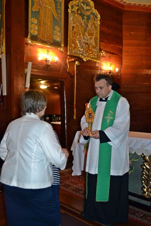 Rozpoczynając zaznaczył, że będzie mówił o błogosławieństwie, które sprawia nam wiele problemów, o ciszy. Zwrócił uwagę, że nie lubimy ciszy, nie potrafimy w niej żyć. Zagłuszamy ją włączonym nieustannie radiem, telewizorem , zwracając się do siebie podniesionym głosem. Uciekamy przed ciszą – kontynuował ks. Marcin- bo ona zmusza nas do myślenia. Jak podkreślił, nieumiejętność życia w ciszy jest efektem grzechu. Zaakcentował, że we współczesnym świecie trudniej doświadczyć ciszy, coraz trudniej znaleźć miejsce na rozmowę z Bogiem. Celebrans podkreślił, że Jezus mówiąc o człowieku cichym, mówił o człowieku pokornym, takim który odpoczywa w Bogu, który udając się na spotkanie z Nim myśli tylko o tym , by oddawać Mu cześć. Jednocześnie ks. wikariusz dodał, że nie jest łatwo być błogosławionym cichym, bo w życiu doświadczamy różnych, nieraz bardzo trudnych sytuacji. Zachęcał jednak, byśmy ciągle próbowali, bo w chrześcijaństwie nie ma ideałów, idealny jest tylko Bóg, a my mamy do tego ideału dążyć. Podkreślił, że trzeba nieustannie szukać miejsca, gdzie dobrze się czujemy na modlitwie, gdzie panuje cisza, która dopuszcza do głosu mowę serca. Kaznodzieja zwrócił uwagę, że jest jeszcze jeden powód dla którego zagłuszamy ciszę, to nasze sumienie. Odzywa się ono właśnie najczęściej w ciszy. W błogosławieństwie mówiącym o ciszy jest zawarta obietnica, iż cisi posiądą ziemię. Ksiądz wikariusz wyjaśnił, że nie chodzi o tę ziemię, którą np. dziedziczymy, ale o nową ziemię, królestwo Boga, gdzie nie będzie już podziałów, ale przede wszystkim nie będzie grzechu. Kończąc ks. Marcin powiedział: Chciejmy słuchać błogosławieństw w naszym życiu, próbujmy iść ich śladami, a wówczas poczujemy jak blisko nas jest Bóg. Czy potrafimy żyć w ciszy, co musimy w swoim życiu zmienić, aby tak naprawdę usłyszeć słowa kierowane do nas przez Boga. Słowa zachęty do szukania miejsca na spotkanie z Bogiem usłyszeliśmy w ten sobotni wieczór w sanktuarium położonym na wzgórzu wśród starych drzew. To miejsce, jak podkreśla wielu je nawiedzających sprzyja refleksji, rozmowie z Bogiem.