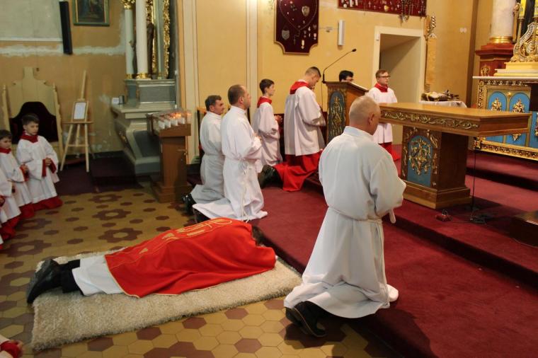 Niepowtarzalna wielkopiątkowa Liturgia Męki Pańskiej została odprawiona przez kustosza Sanktuarium, ks. kan. Łukasza Żurawskiego o godzinie 19:00. Rozpoczęła się ona od wejścia celebransa i asysty w ciszy do kościoła, którzy przed ołtarzem przez chwilę leżeli krzyżem. Po modlitwie wstępnej odczytane zostało proroctwo o Cierpiącym Słudze Jahwe i fragment Listu do Hebrajczyków. Następnie odczytany został, z podziałem na role, opis Męki Pańskiej według św. Jana.