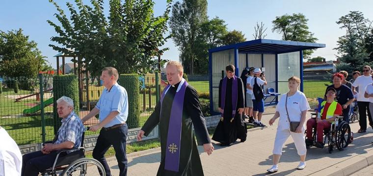 Do wielu z nich zapraszamy bliskich nam ludzi, szczególnie wtedy, gdy przeżywamy radość. Trudniej, gdy dotyka nas cierpienie, bo tu naprawdę trzeba nam przyjaciół wypróbowanych. Co roku takich wypróbowanych przyjaciół, my osoby niepełnosprawne, z różnych stron diecezji kaliskiej, spotykamy zawsze w sobotę przed ostatnią niedzielą sierpnia, kiedy wszystkie drogi prowadzą do Lutogniewa, a w sercu pojawia się pragnienie aby jeszcze raz spojrzeć w oczy Matki Bożej Pocieszenia. Pragnienie jest tym większe, bo wiemy, że Ona zawsze zauważa nasze problemy, może nam wiele wyprosić u Jezusa i co najważniejsze wzywa nas do tego, by iść za Nim, by trwać w Nim i wypełniać Jego przykazania. No to wyruszyliśmy w sobotni poranek sprzed kościoła św. Apostołów Piotra i Pawła w Krotoszynie w XVII Pielgrzymce osób niepełnosprawnych do Sanktuarium Matki Bożej Pocieszenia w Lutogniewie. Przewodnikiem tej wyjątkowej grupy był ks. kan. Grzegorz Jóźwicki proboszcz parafii p. w. św. Apostołów Piotra i Pawła w Krotoszynie, którego wspomagali ks. Michał Włodarski, ks. Piotr Dobrychłop oraz ks. Krzysztof Dończyk. W tych wyjątkowych rekolekcjach w drodze towarzyszyły nam także nasze rodziny, jak i przyjaciele, którzy często rezygnując czasem z ciekawszej formy spędzenia wolnego czasu, postanowili pomóc nam w spełnieniu naszego marzenia. Nasze pielgrzymowanie to przede wszystkim modlitwa, wyrażana również wspólnym śpiewem, która jest także byciem z drugim człowiekiem. Pielgrzymować to też unieść swoją słabość, niepełnosprawność, przyjąć pomoc drugiego człowieka. Pielgrzymować znaczy w końcu dojść do celu ~ ucieszyć się z wypełnionej obietnicy, z wyrażonej duchem i ciałem modlitwy. Na powitanie strudzonych, ale jakże szczęśliwych pielgrzymów, wyszedł ks. kan. Łukasz Żurawski, kustosz tutejszego Sanktuarium, wraz z klerykami; Karolem Raczakiem, Jędrzejem Grobelnym, Mikołajem Wawrzyniakiem aby jeszcze uroczyściej przy bijących dzwonach, wprowadzić nas przed obraz Matki Bożej Pocieszenia. Po powitaniu przez księdza kustosza, nie kryjącego swej radości z naszej obecności i przedstawieniu grup pielgrzymkowych oraz osób, które przybyły indywidualnie z terenu całej diecezji kaliskiej, w oczekiwaniu na najważniejsze spotkanie tego wyjątkowego dnia, po raz kolejny wyraziliśmy swoją radość we wspólnym śpiewaniu. O godzinie 10:00 uczestniczyliśmy w uroczystej Eucharystii, którą odprawił ks. kan. Grzegorz Jóźwicki. W koncelebrze stanęli: ks. Michał Włodarski, ks. Krzysztof Dończyk. Ks. kan. Grzegorz w słowie skierowanym do pielgrzymów, przypomniał nam o darze wdzięczności wobec osób które towarzyszą nam w naszym codziennym pielgrzymowaniu. Niestety, w zabieganiu, w poczuciu samowystarczalności i bezsprzecznych racji często zapominamy o swoim opiekunie, może trochę słabszym od nas, może chodzącym o kulach, jeżdżącym na wózku. Trzeba Bogu dziękować za Anioły, które do nas posyła, a chcące dawać nam oparcie, gdy jest ciężko, gdy trud codzienności zbyt mocno nas przygniata. Dziękować za każdego jednego człowieka, którego Bóg stawia w konkretnym celu na naszej drodze, tego znanego i nieznanego. Po zakończonej Eucharystii jeszcze raz swoje słowa skierował do nas ksiądz kustosz, który zaprosił nas do uczczenia relikwii świętej Siostry Faustyny Kowalskiej, wspólnego odmówienia Litanii do Matki Bożej Pocieszenia, a także do przejścia wokół ołtarza. Nasze radosne i pełne wzruszeń spotkanie zakończyliśmy w ogrodach proboszczowskich, gdzie w „Altance u Plebanka”, czekały na nas pyszne zupy oraz smażone kiełbaski, przygotowane przez tutejszych parafian oraz wiele innych wyjątkowych atrakcji.