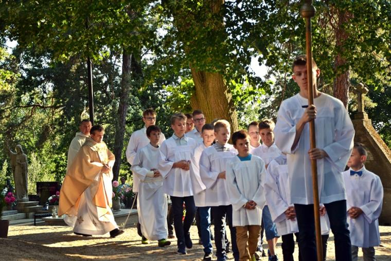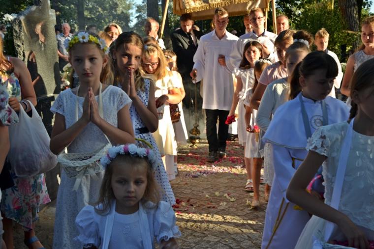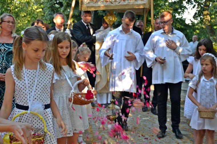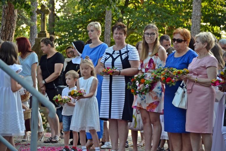 Po Mszy Świętej odbyło się wystawienie Najświętszego Sakramentu, odmówiliśmy Litanię do Serca Jezusowego. Następnie z Jezusem ukrytym pod postacią Chleba wyruszyliśmy alejkami cmentarnymi w procesji do czterech ołtarzu. Myślą przewodnią haseł, która znalazły się w tym roku na przygotowanych przez poszczególne rejony parafii była NIEDZIELA. Hasła skłaniały wiernych do spojrzenia na niedzielę w następujących aspektach: Niedziela dniem Kościoła, Niedziela dniem rodziny, Niedziela dniem wiary, Niedziela dniem człowieka. Procesję zakończyło błogosławieństwo Najświętszym Sakramentem na cztery strony świata. Następnie odbyło się poświęcenie wianków z ziół i kwiatów. To wyraz naszej wiary i zaufania Bogu. Przyniesione zostały pierwociny pól i łąk, by Bóg nam błogosławił, by nikomu nie zabrakło chleba powszedniego, bo tego będącego pokarmem dającym życie wieczne nigdy nie zabraknie… Obyśmy tylko chcieli się nim karmić… Zadziwiająca jest siła wiary i tradycji w naszej wspólnocie.
